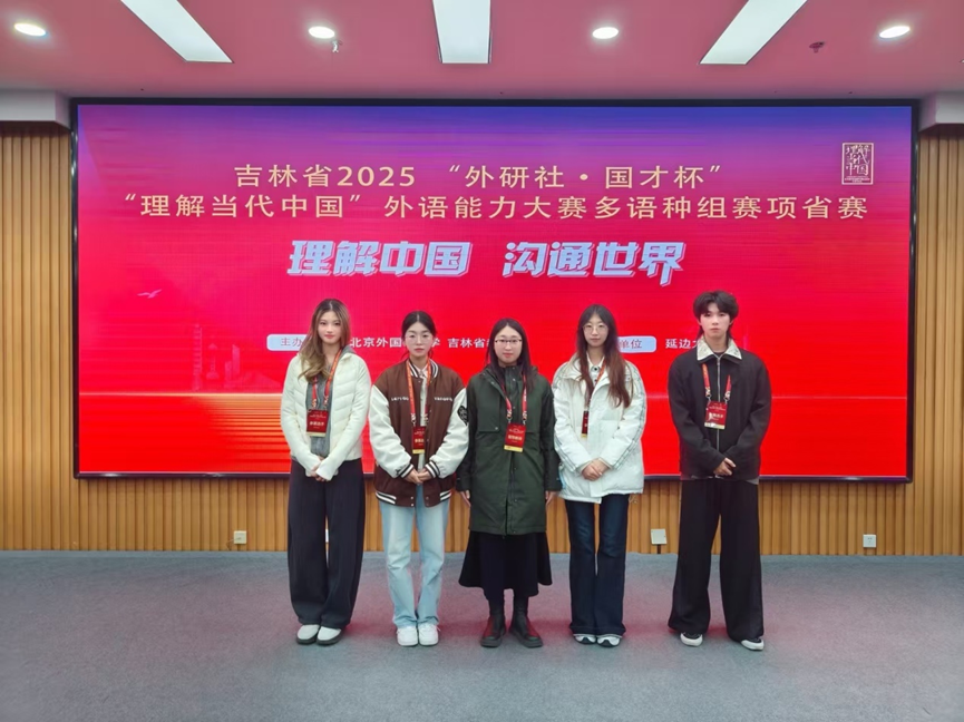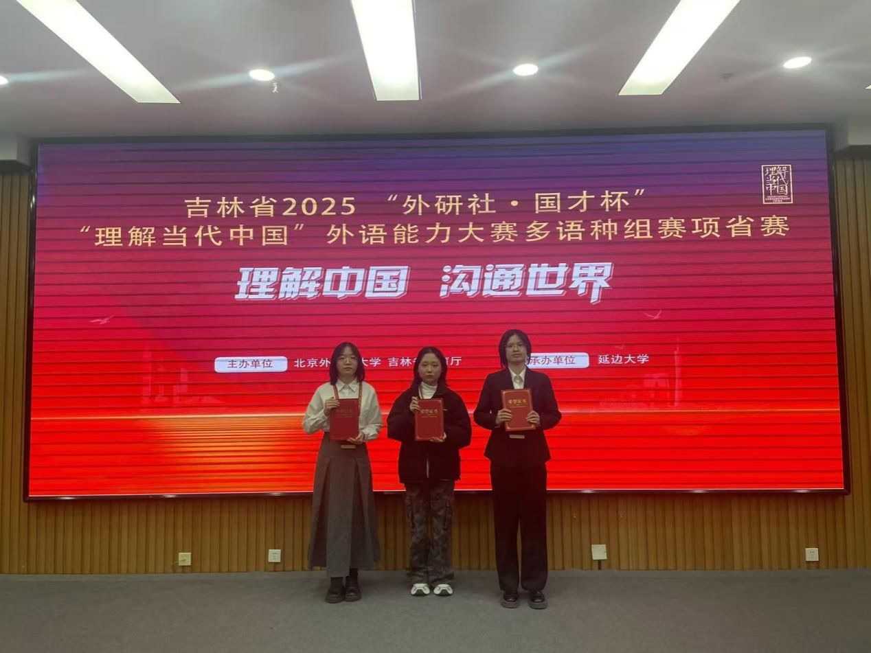 2025年10月25日,由北京外国语大学、吉林省教育厅主办,延边大学承办的2025“外研社·国才杯”“理解当代中国”外语能力大赛(多语种组)吉林省省赛圆满收官。在这场高手云集、竞争激烈的赛事中,我院学子凭借扎实的外语功底、卓越的综合素质和出色的临场发挥,斩获多项殊荣,参加俄语、西班牙语、日语三个组别比赛的选手均取得奖项,具体获奖情况如下: