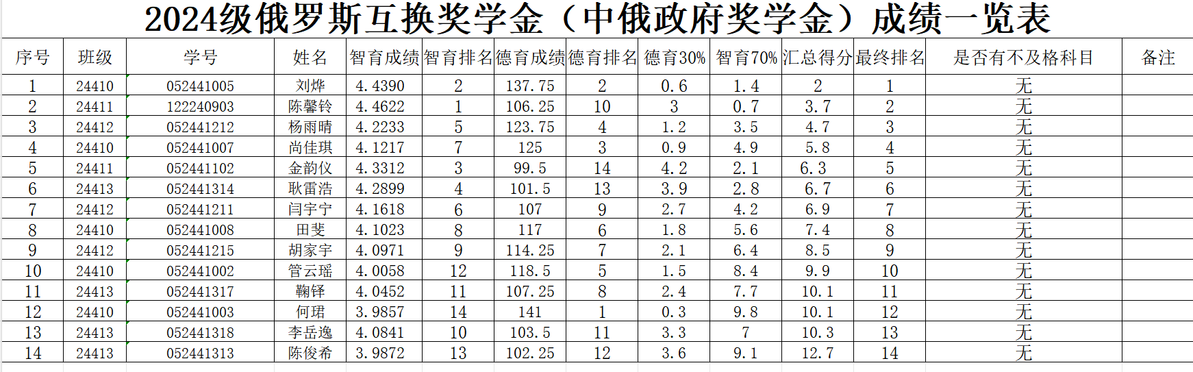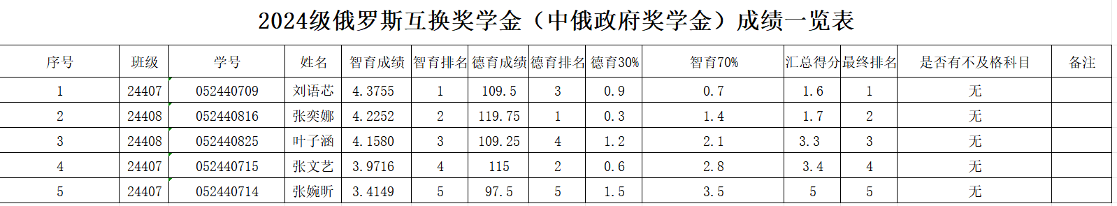 以年级俄语专业为单位,对申报人员所在专业的德育和智育成绩先进行排序。其中,德育成绩占比30%、智育成绩占比70%。