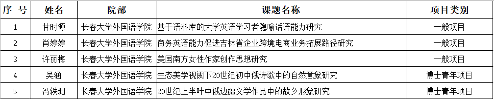 我院肖婷婷、许丽梅、甘时源、吴涵、冯轶珊五位教师获批2025年度吉林省社会科学基金项目。